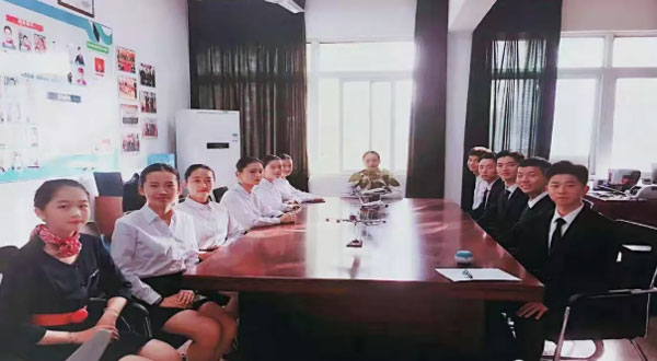 美丽优雅的空乘礼仪评委老师,从专业的角度为我们的学生点评与指导。